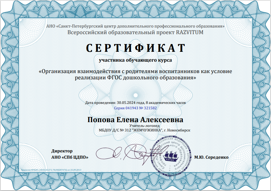 АНО «Санкт-Петербургский ЦДПО» Всероссийский образовательный проект RAZVITUM