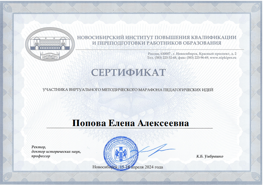 НИПКиПРО	Сертификат участника виртуального методического марафона педагогических идей